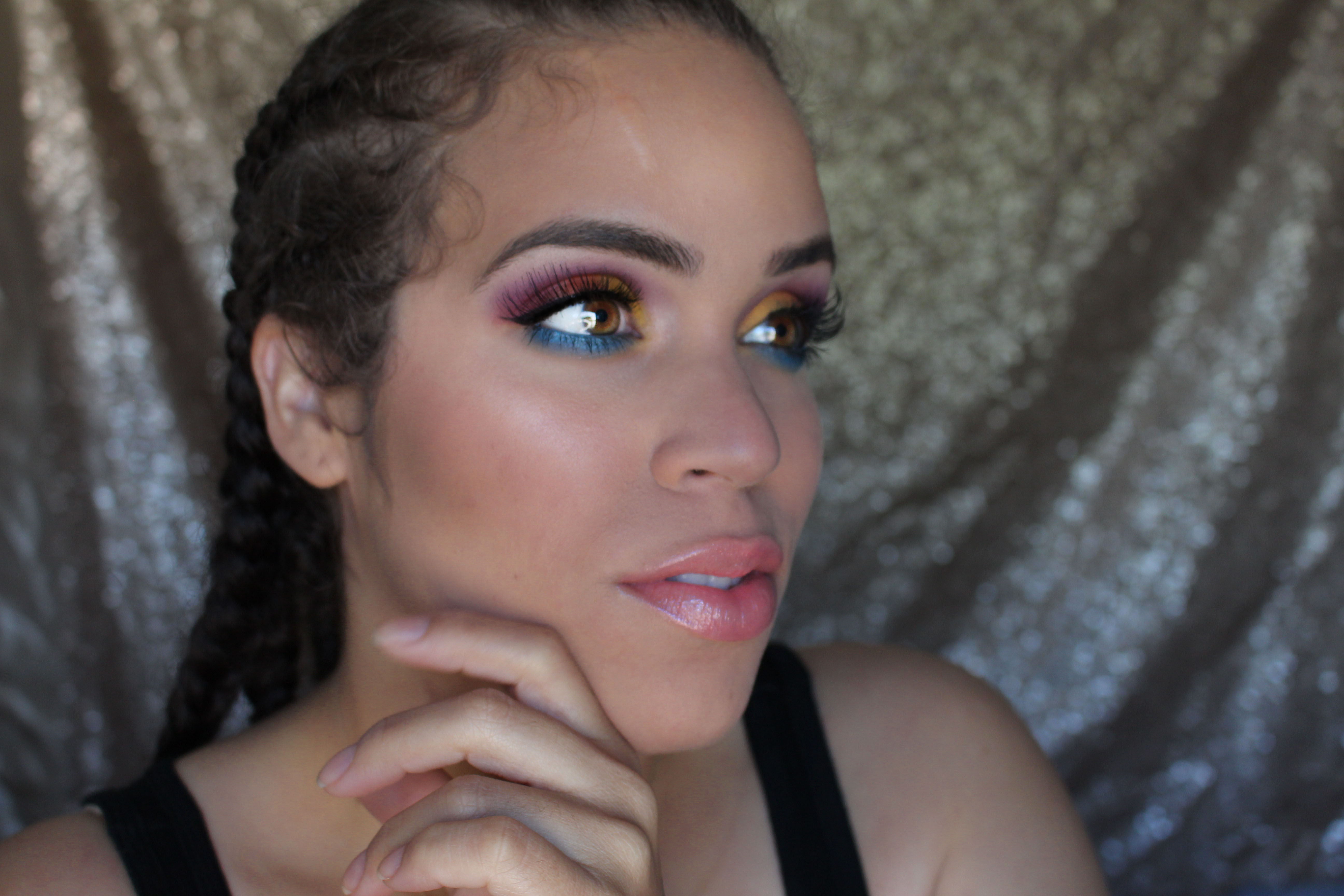 This look is a beauty re-do for me. I had done this look about a year ago and it was my first time playing with so many colors and no transitional shades or neutral shades to tone it down or blend it out. It’s all color, all fabulous, and all tropical. This look is inspired by summer sunsets over a blue ocean but it can also be a rainbow eyeshadow look, a very warm rainbow. I love this look, it’s simple and colorful. I hope you guys enjoy it! If you want to recreate any of my looks, please share it with me on instagram with hashtag #esbeautyrealm so that I can see your recreations and feature them on my page!